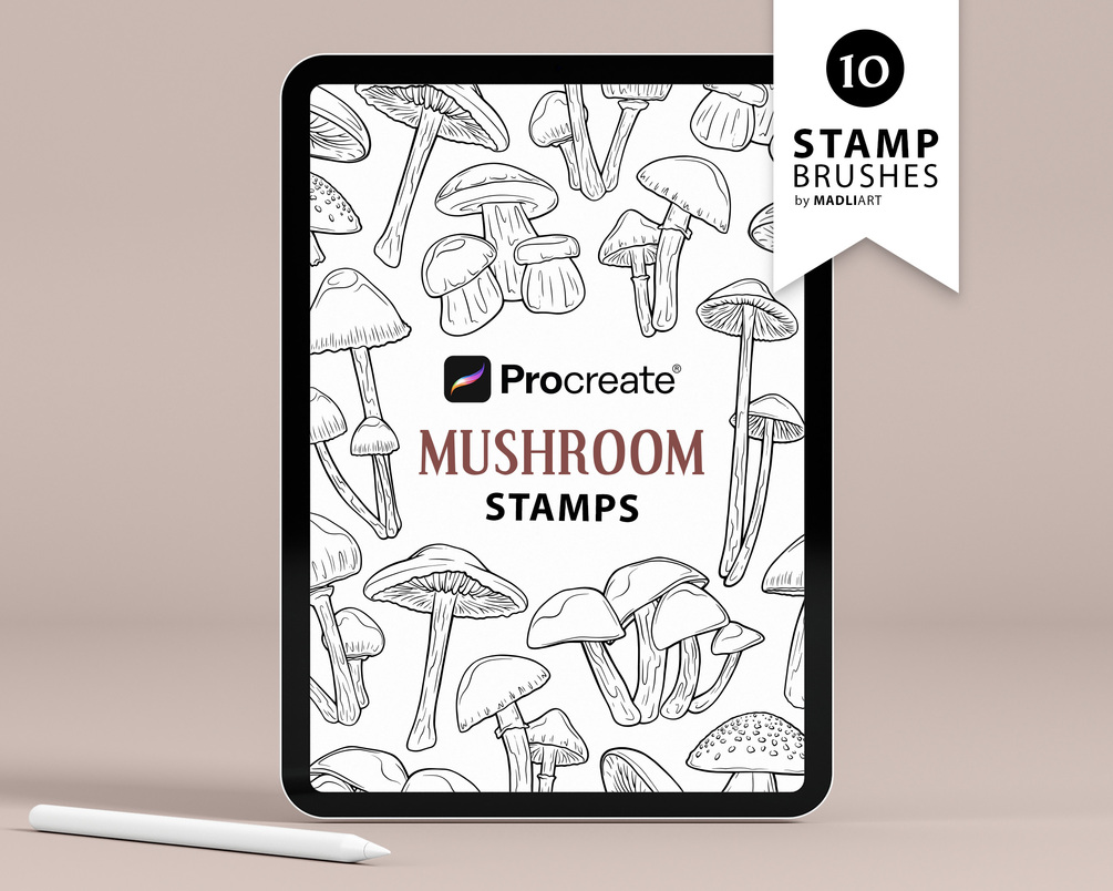 Mushroom Stamps for Procreate | Magic Mushrooms Stamp Set | Procreate Mushroom Brushes | Forest Mushroom Tattoo Design