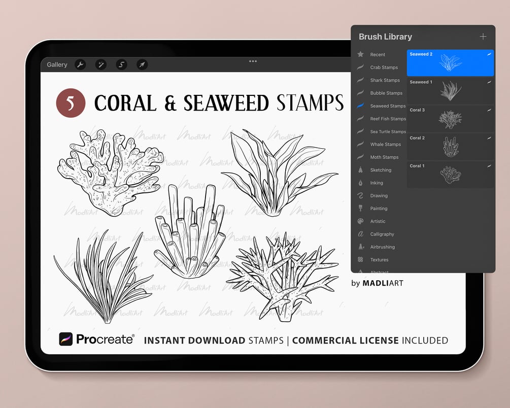 Coral & Seaweed Stamps for Procreate | Coral Reef Stamp Set | Procreate Ocean Brushes | Coral Tattoo Design