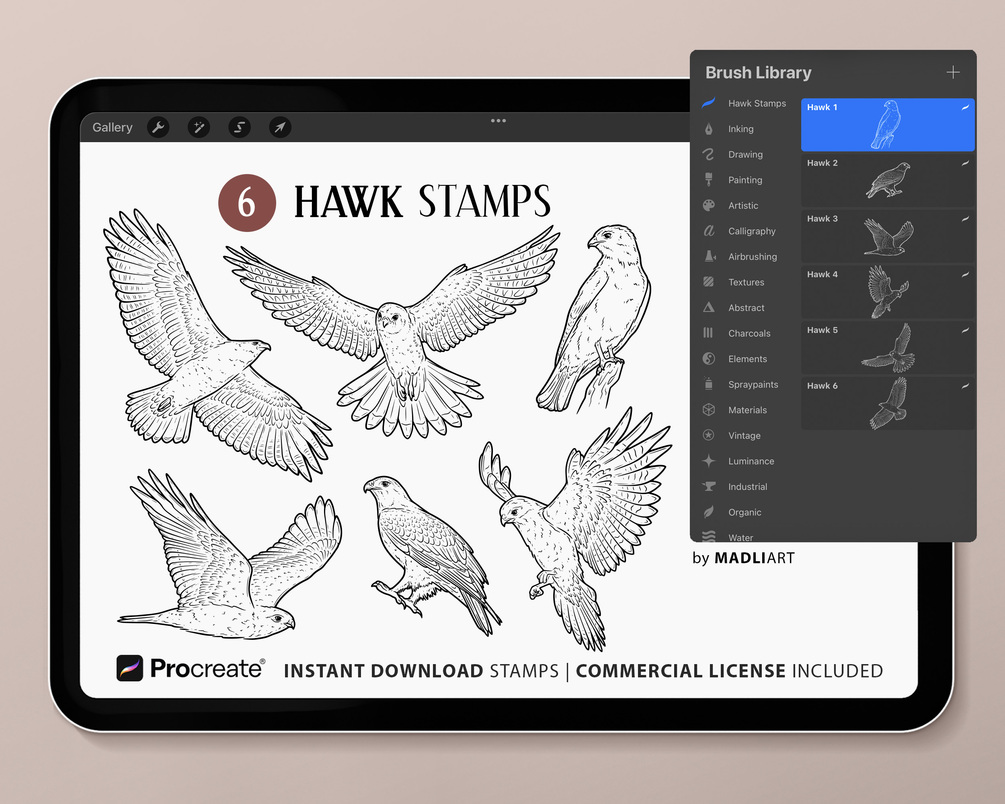 Hawk Stamps for Procreate | Bird Of Prey Stamp Set | Procreate Flying Bird Brushes | Hawk Tattoo Design