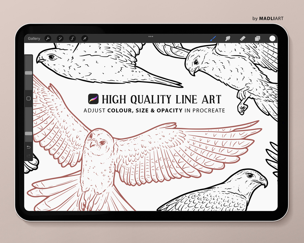 This is a collection of 6 Hawk Procreate Stamps. This bird line art set consists of 6 hawk outline stamps of Cooper's Hawk, Red-Tailed Hawk, Owl, Rough-legged Hawk. All bird of prey illustrations come in high quality with detailed line work and are hand-drawn by professional Illustrator.