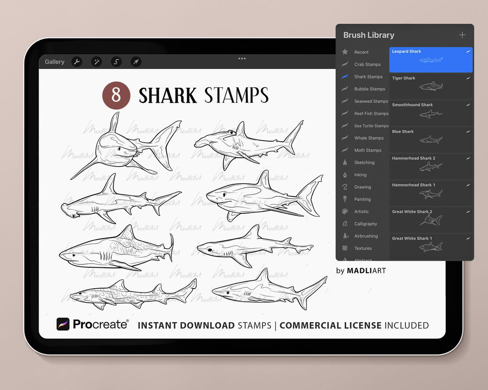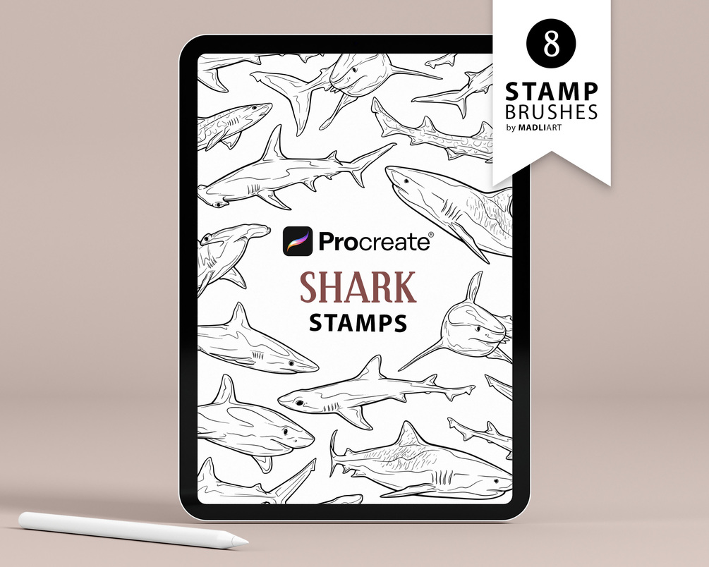 Shark Stamps for Procreate | Ocean Animal Stamp Set | Procreate Shark Brushes | Shark Tattoo Design